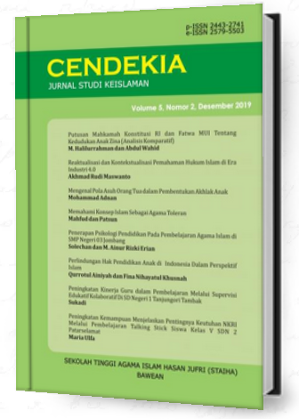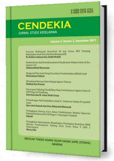 CENDEKIA: Jurnal Studi Keislaman memuat kajian keislaman yang meliputi pendidikan, hukum, ekonomi, dan pemikiran islam, serta kajian islam lainnya. Terbit dua kali setahun, yaitu bulan Juni dan Desember. Diterbitkan oleh Institut Agama Islam Hasan Jufri Bawean, E-ISSN: 2579-5503 P-ISSN: 2443-2741